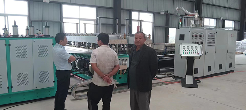客户在炎炎夏日里亲临现场试机,我们的设备和服务怎能不给力?中空板生产线高速生产设备准时交付了,客户满意,但我们并不放松,后续的服务要跟上!