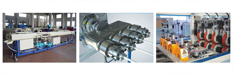 PVC 双管挤出生产线生产的产品主要应用于建筑穿线管,电工管等,一流的品质融进了多年经验, 主机采用锥形双螺杆挤出机,提高混炼效果,挤出压力高。双管挤出模具。生产效率高,成型稳定。采用双管真空定径技术,喷淋冷却,确保管材质量。独立控制的整体结构的双管牵引机构和同步切割装置。设备紧凑,占地面小。配合准确及随意设定的定翻和堆放装置。
