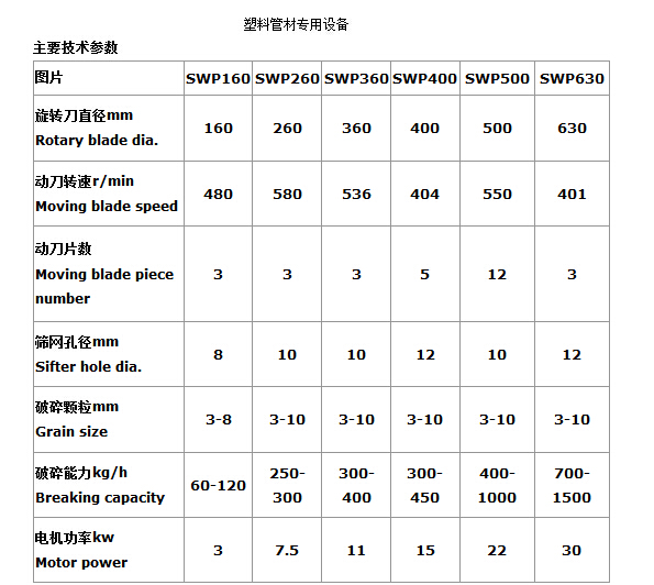 SWP-400型塑料破碎机是回收大型型材,管材的理想设备。
