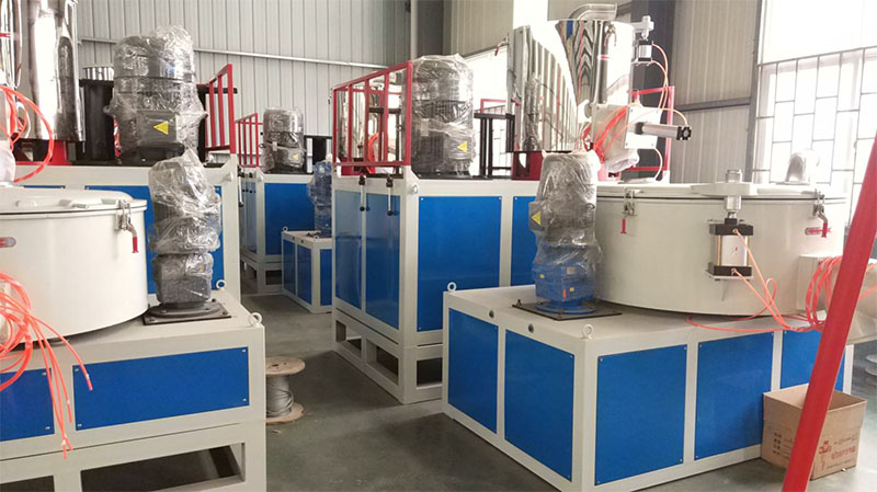 高冷混合机简介: 该机组系统在引进先进技术的基础上研制而成,主要用于各种树脂和PE、PP、PVC等材料的配料、混合、着色、干燥以及ABS聚碳酸酯等工程塑料加工前的干燥、脱挥等。 该机组将混合与冷混合工艺结合在一起,完成热混的物料自动进入冷混使其冷却,排除残余气体,并可防止结块。